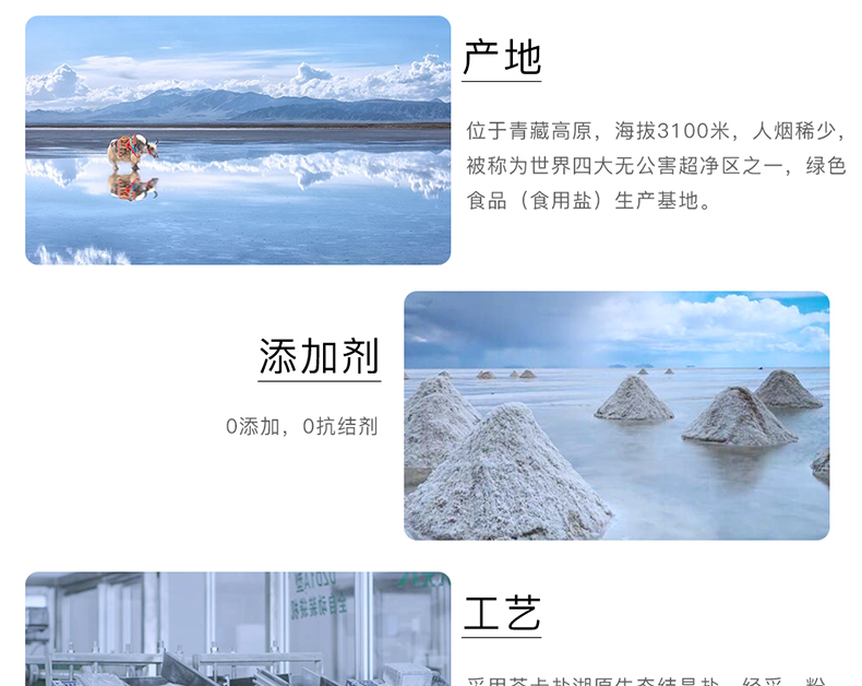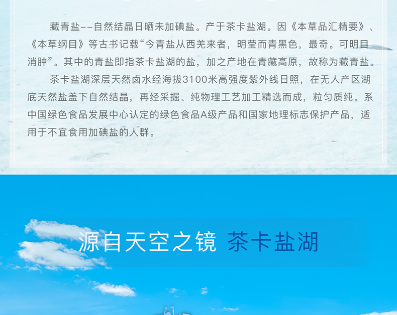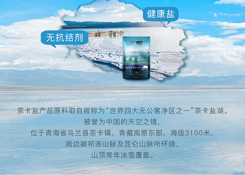自然結(jié)晶日曬未加碘鹽。產(chǎn)于茶卡鹽湖。[微信掃碼購買]